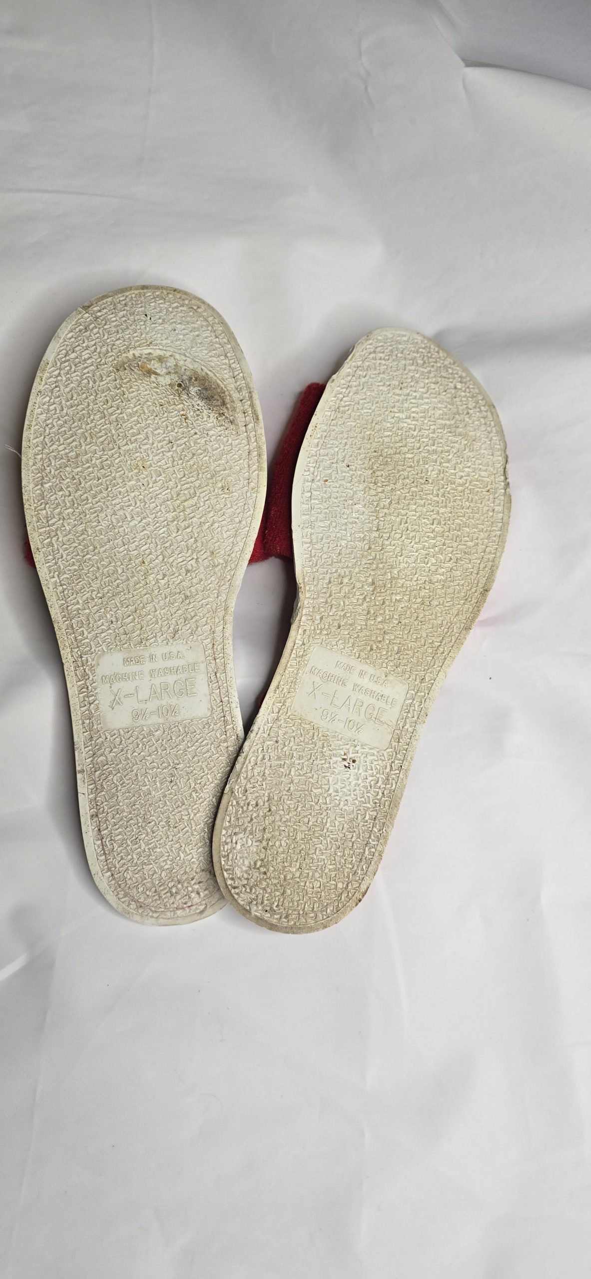 Vintage Delta Sigma Theta Sorority, Inc. bedroom slippers featuring classic crimson color and vintage crest. Made in the USA. A nostalgic and collectible Delta keepsake.